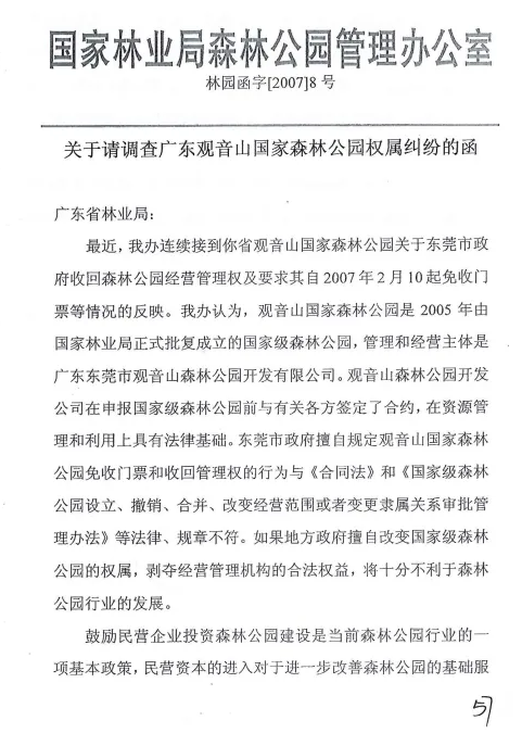 1、东莞市林业局、樟木头镇政府不支持申报国家级森林公园,甚至直接发文要求撤销国家级森林公园许可