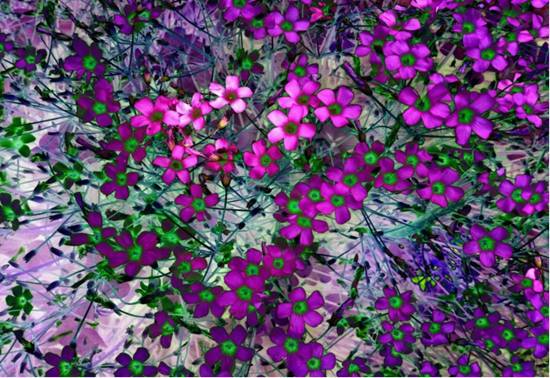 太阳把光反射到地球上时,光已经穿过了数不清空间的物质。光在空间与同一种物质碰撞时,因物质所处的空间位置不同会产生不同的光效,在与不同的物质碰撞时也会产生不同的光效。也正是如此,我才能够从任何一张照片中分离出不同的光色,并且还能够从这张照片中裂变出数不清的色彩所形成的结构图案。这就意味着,人们可以从空间的信息中分离出不同的色彩,可以从光图中裂变出不同色彩所构成的图案。从空间取出光效形成的图案是取之不尽用之不竭的,只要有光,就可从不同的物质上分离和裂变出不同的光效图案。