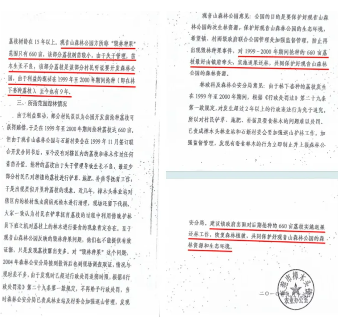 2、有关660亩原始次生林被石新村民毁掉种上荔枝树的举报和诉讼