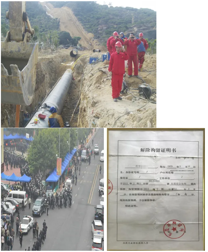 14、东莞市政府蓄意更改路线,让西气东输工程直接穿越公园,对阻止违法施工的员工实施抓捕