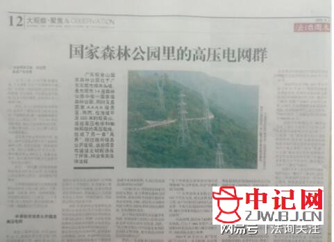 《法治周末》报道的《国家森林公园里的高压电网群》